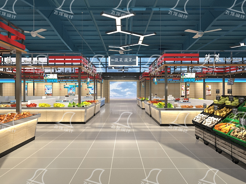 攤位設(shè)計同樣暗藏巧思:統(tǒng)一采用灰色花崗石臺面與原木外圍,蔬果區(qū)按四季劃分主題色區(qū)域,既保證視覺通透度,又讓食材陳列成為風(fēng)景。