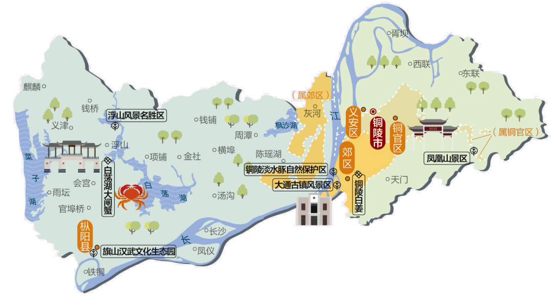 悅江市集坐落在風光秀美、人文薈萃的銅陵,位于淮河大道旁。萬里長江穿境過,山水林田湖俱全,銅陵擁有天井湖、浮山、旗山漢武文化生態(tài)園等國家4A級旅游景區(qū),同時世界上首座利用半自然水域條件對國家一類重點保護動物白鰭豚進行養(yǎng)護的基地也坐落于此。
