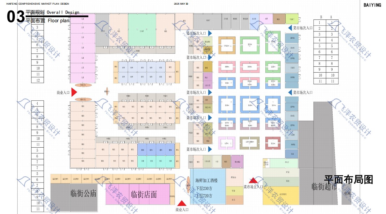 長(zhǎng)合市集坐落于海豐縣傳統(tǒng)街區(qū),項(xiàng)目以"妙街食集"為主題,深度挖掘在地廟宇文化與嶺南建筑特色,通過(guò)IP形象打造、非遺活動(dòng)植入與特色美食聚合,構(gòu)建一個(gè)既能滿足日常采購(gòu)需求,又能成為文化體驗(yàn)?zāi)康牡氐膭?chuàng)新型市集空間。