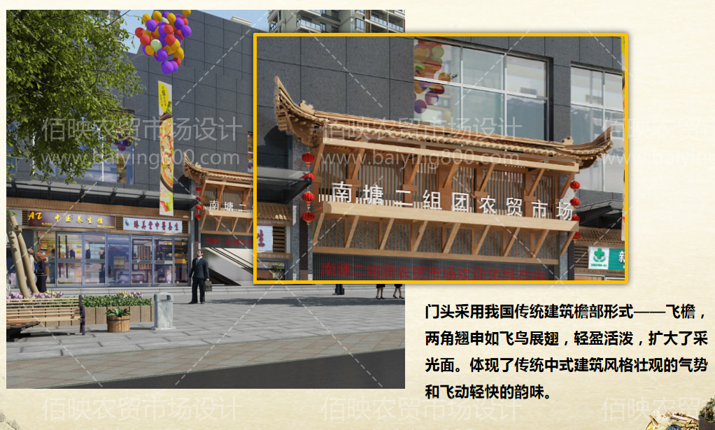 以下為例:是溫州某農(nóng)貿(mào)市場(chǎng)項(xiàng)目的規(guī)劃設(shè)計(jì)方案,因其位于溫州市鹿城區(qū)南塘附近,且與南塘中醫(yī)藥街區(qū)僅一路之遙,故通過(guò)挖掘其區(qū)位文化、人文精神后,量身定做了如下方案: