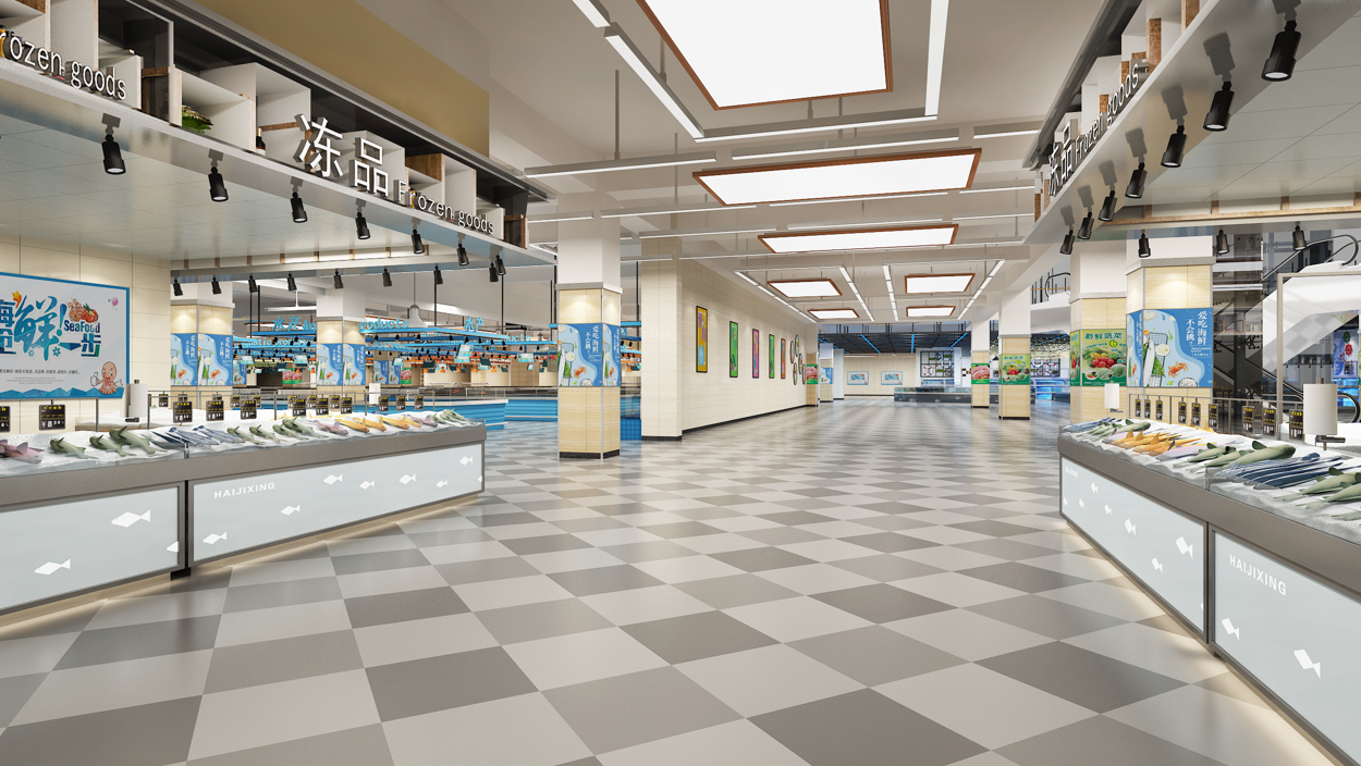 設(shè)計(jì)師在不同商品售賣區(qū)選用不同的撞色搭配,在豐富視覺效果的同時(shí),更使住戶在購物過程中只需通過方格的顏色,便能輕松找到不同種類商品的售賣區(qū)域,無形中優(yōu)化了購物體驗(yàn)。