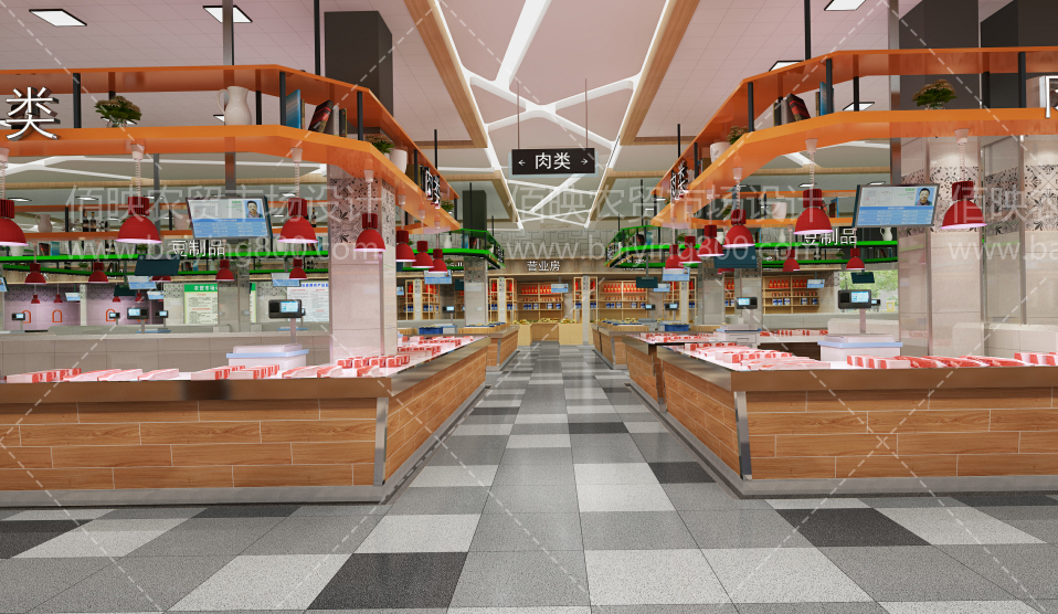 一個(gè)好的農(nóng)貿(mào)市場(chǎng)設(shè)計(jì)不僅要考慮照明和美觀,還要營造出空間的美感、優(yōu)雅的氛圍。不同攤位和業(yè)態(tài)對(duì)燈光的顏色要求和色彩是不一樣的。例如蔬菜區(qū)應(yīng)為綠色光;鮮肉區(qū)要使用紅色光;熟食區(qū)可設(shè)計(jì)為黃色;水產(chǎn)區(qū)就要用藍(lán)色燈光。為各個(gè)業(yè)態(tài)量身定制的燈光設(shè)計(jì)可以突出商品的特色,營造獨(dú)特的視覺效果,激發(fā)人們的購買欲望。