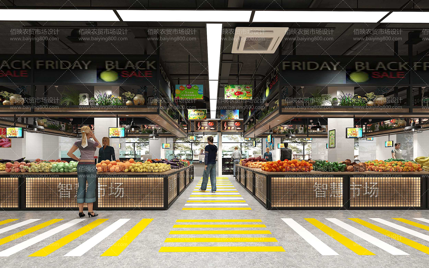 接下來杭州佰映將針對農(nóng)貿(mào)市場設計中的區(qū)域功能部署給大家進行幾點說明。